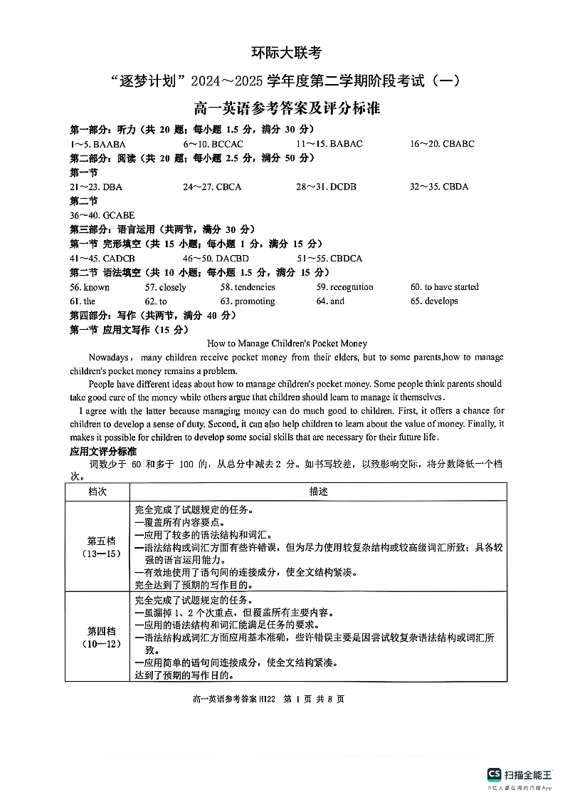河南省驻马店市环际大联考2024-2025学年下学期高一阶段考试(一)英语答案