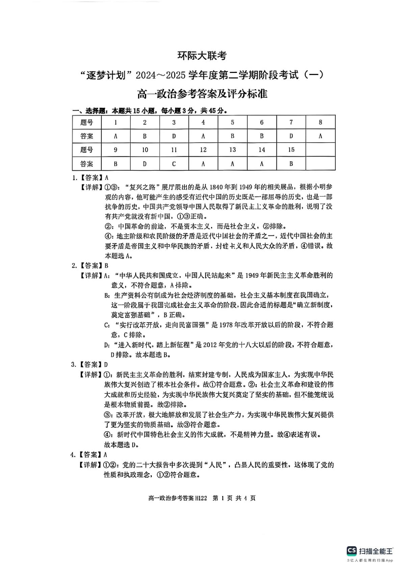 河南省驻马店市环际大联考2024-2025学年下学期高一阶段考试(一)政治答案