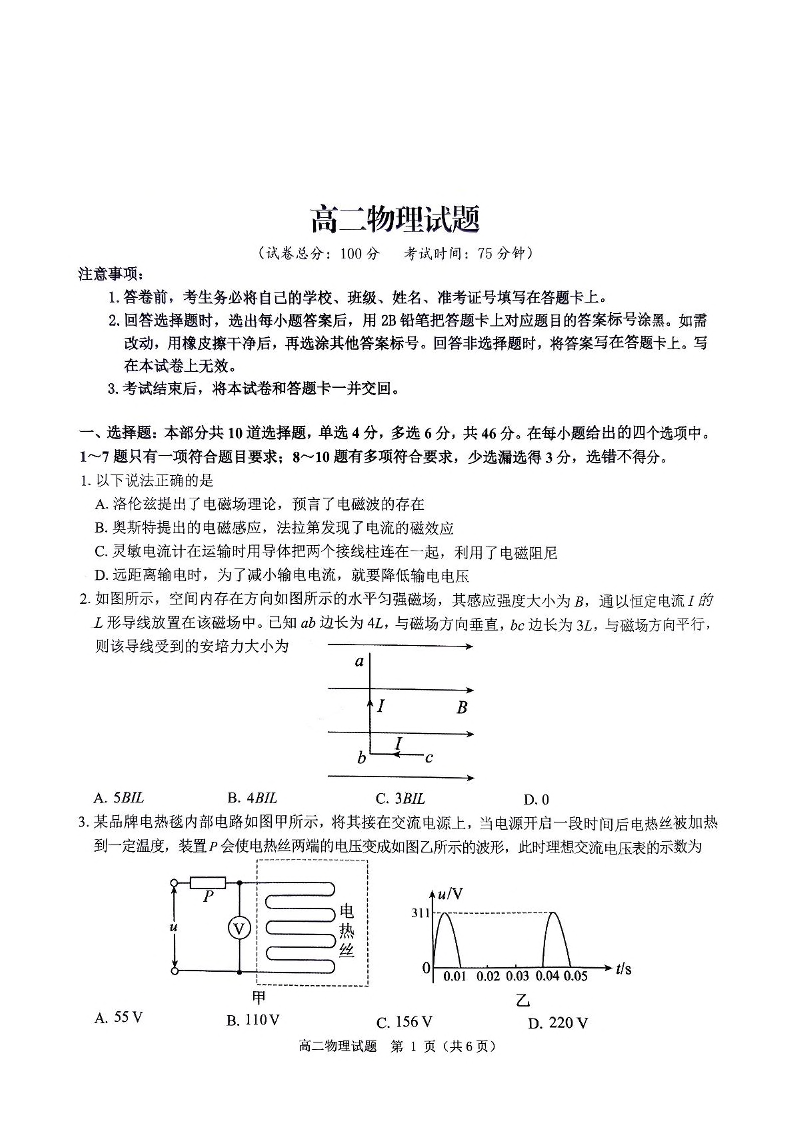 河南省驻马店市环际大联考2024-2025学年高二下学期阶段考试(一)物理+答案