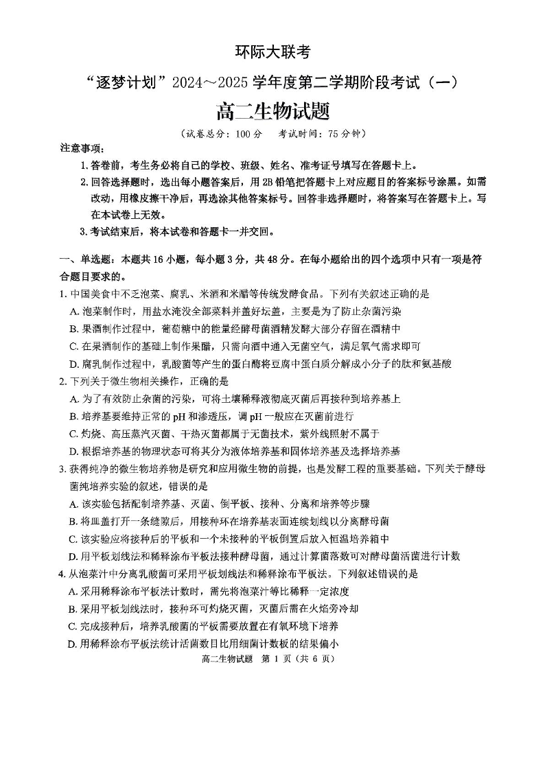 河南省驻马店市环际大联考2024-2025学年下学期高二阶段考试(一)生物