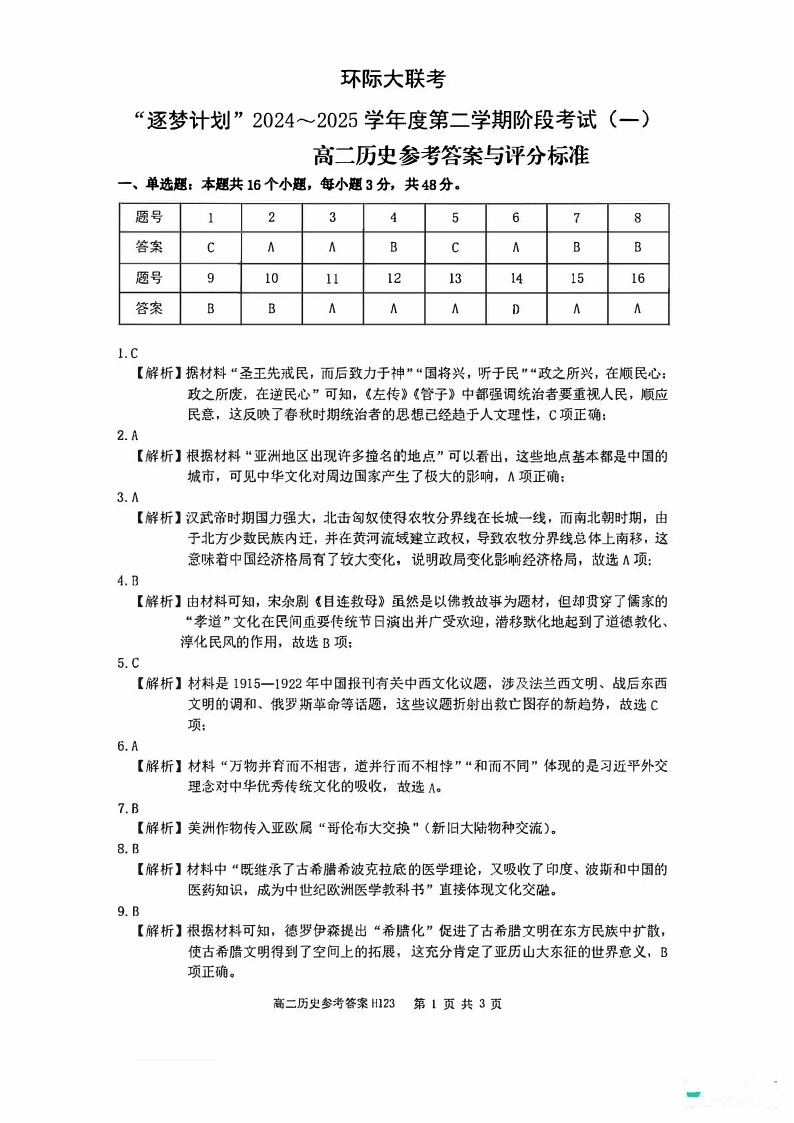 河南省驻马店市环际大联考2024-2025学年下学期高二阶段考试(一)历史答案