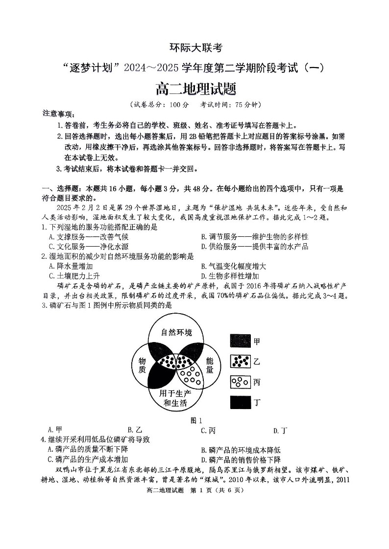 河南省驻马店市环际大联考2024-2025学年下学期高二阶段考试(一)地理