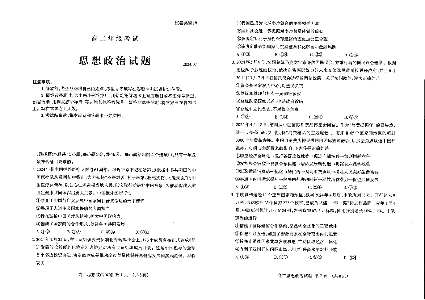 山东省泰安市高2025届下学期7月期末考试政治