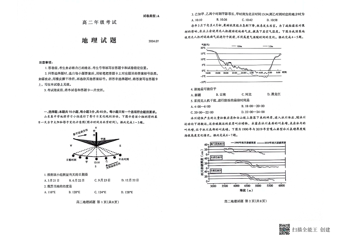 山东省泰安市高2025届下学期7月期末考试地理
