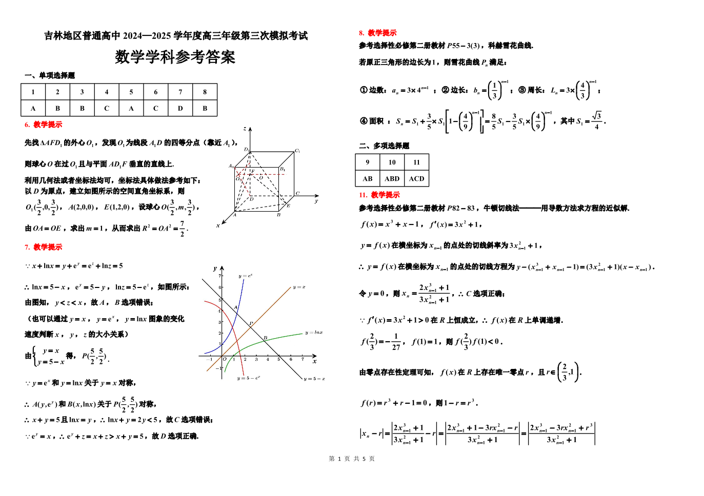 吉林省吉林市普通高中2025届高三第三次模拟测试(吉林三模)数学答案