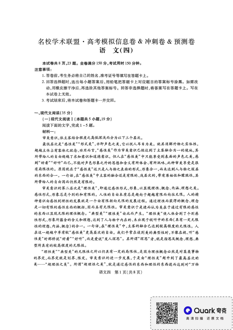 名校学术联盟·高考模拟信息卷&冲刺卷&预测卷(四)语文