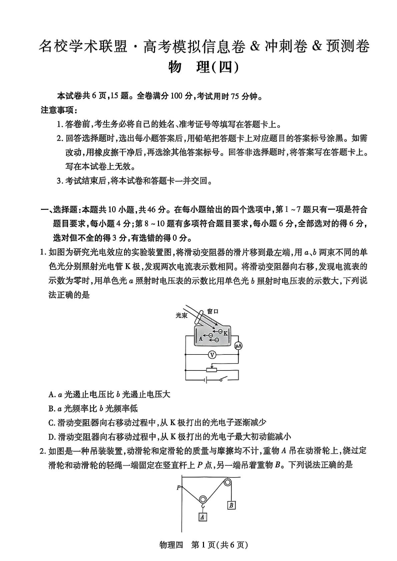 名校学术联盟·高考模拟信息卷&冲刺卷&预测卷(四)物理