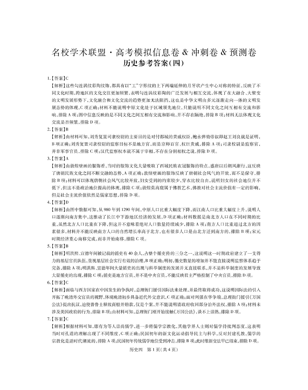 名校学术联盟·高考模拟信息卷&冲刺卷&预测卷(四)历史答案