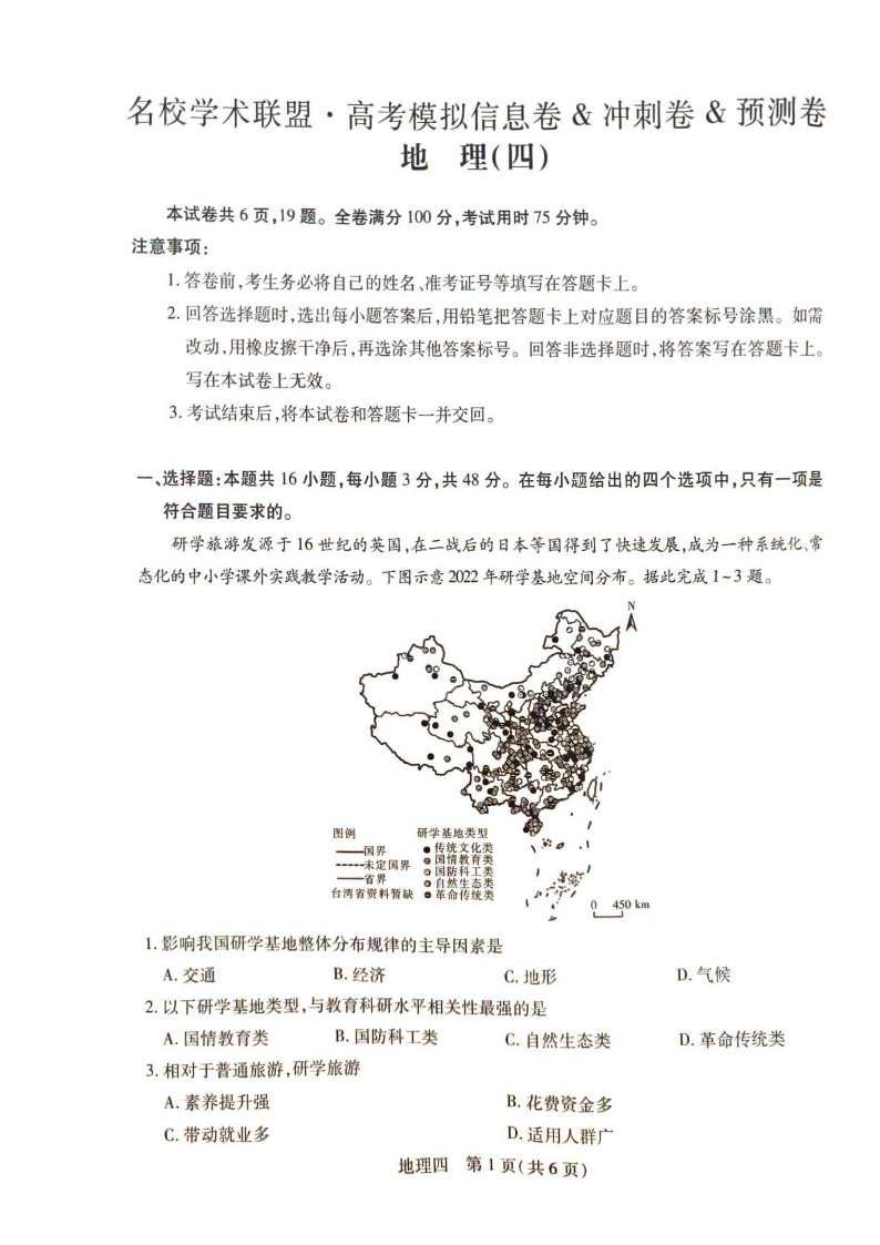名校学术联盟·高考模拟信息卷&冲刺卷&预测卷(四)地理