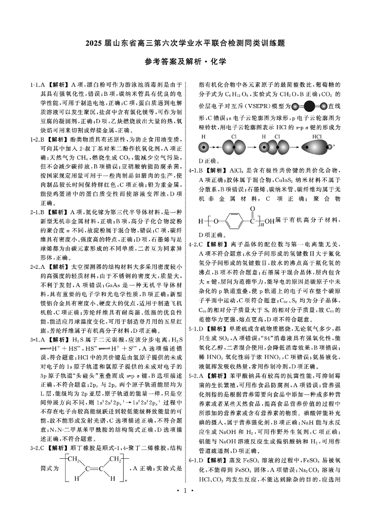 山东省齐鲁名校大联考2025届高三下学期第六次学业水平联合检测化学答案