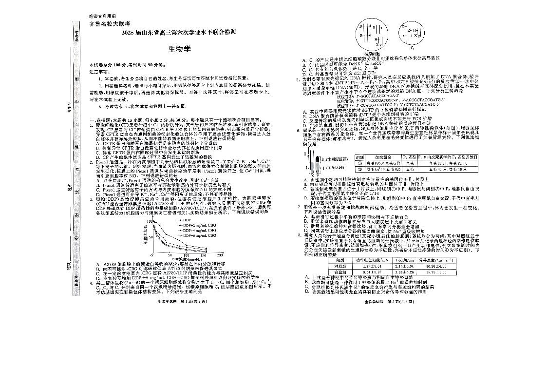 山东省齐鲁名校大联考2025届高三下学期第六次学业水平联合检测生物