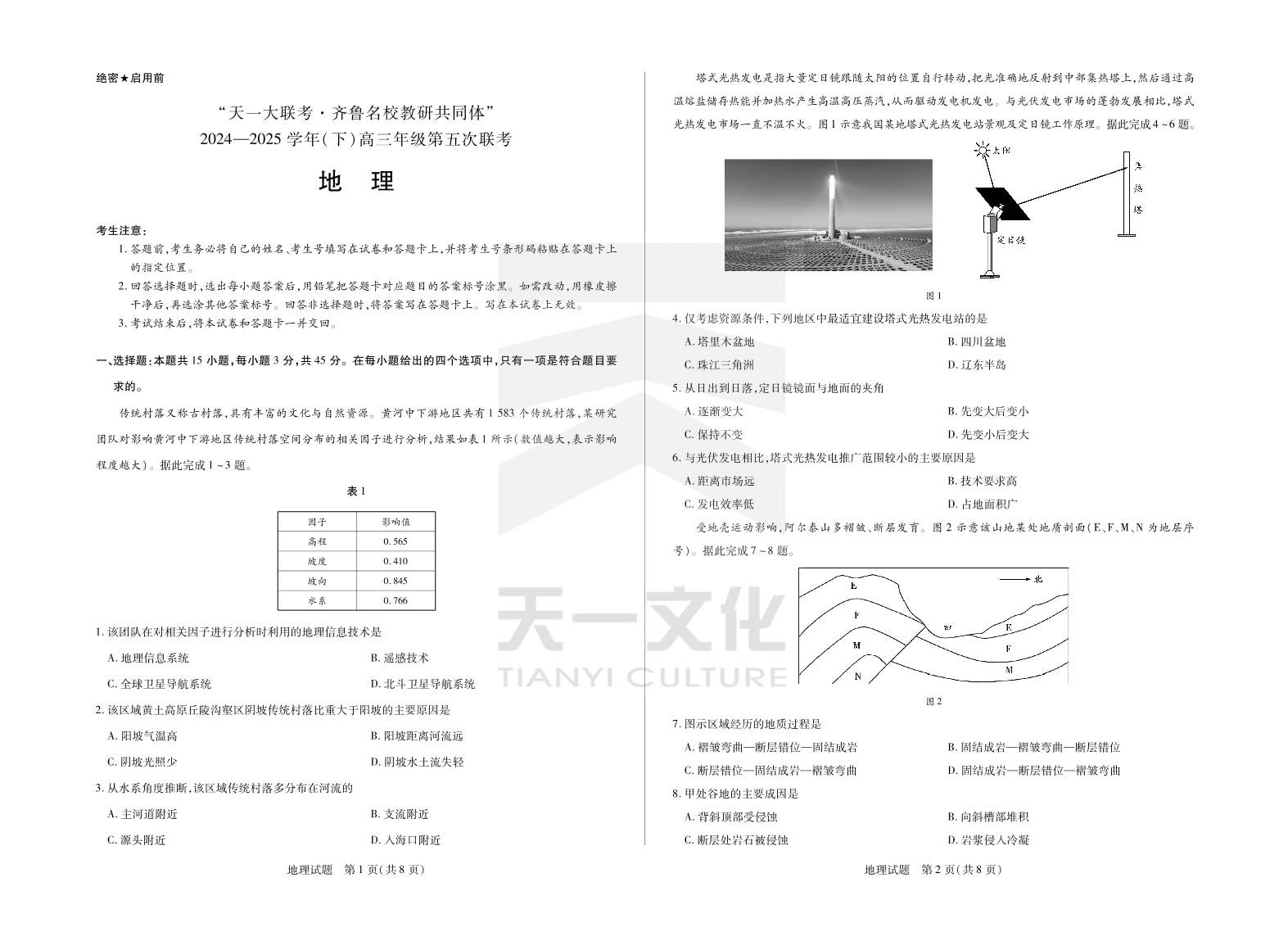 山东省天一大联考齐鲁名校教研共同体2025届高三下学期第五次联考地理