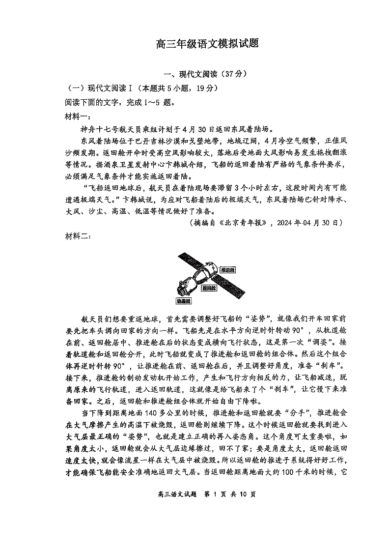 山西省大学附属中学校2024-2025学年高三下学期3月月考语文