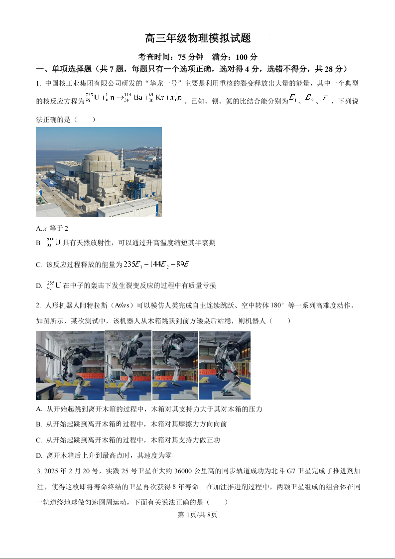 山西省大学附属中学校2024-2025学年高三下学期3月月考物理