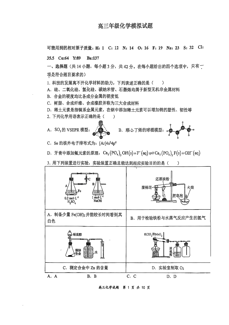 山西省大学附属中学校2024-2025学年高三下学期3月月考化学