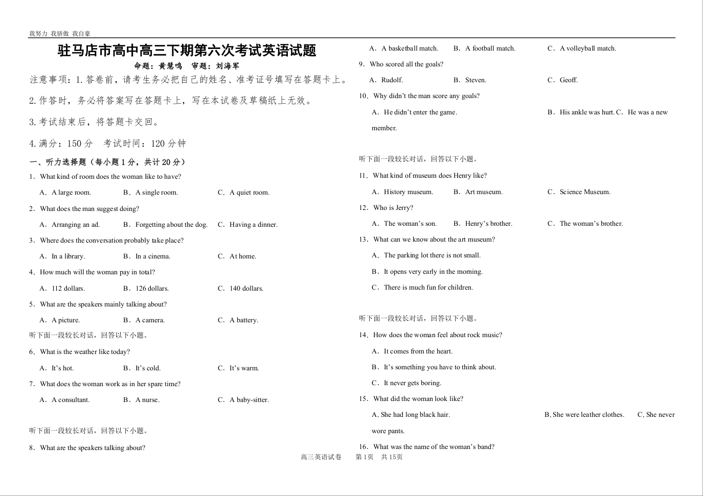 河南省驻马店高级中学2025届高三下学期4月月考英语+答案