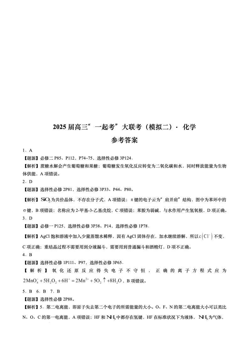 湖南省2025届高三下学期“一起考”大联考(模拟二)化学答案
