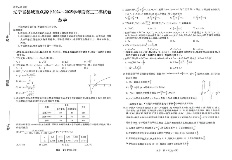 辽宁省县域重点高中2025届高三下学期二模考试数学