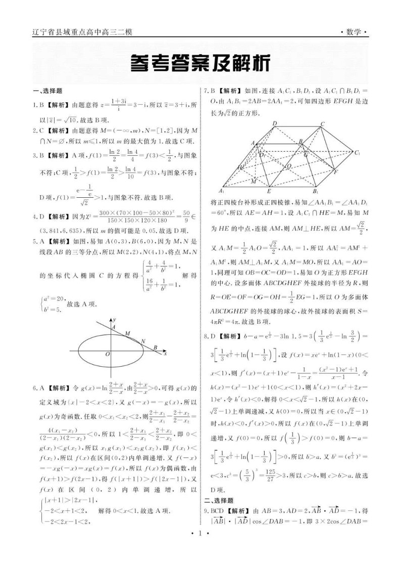 辽宁省县域重点高中2025届高三下学期二模考试数学答案