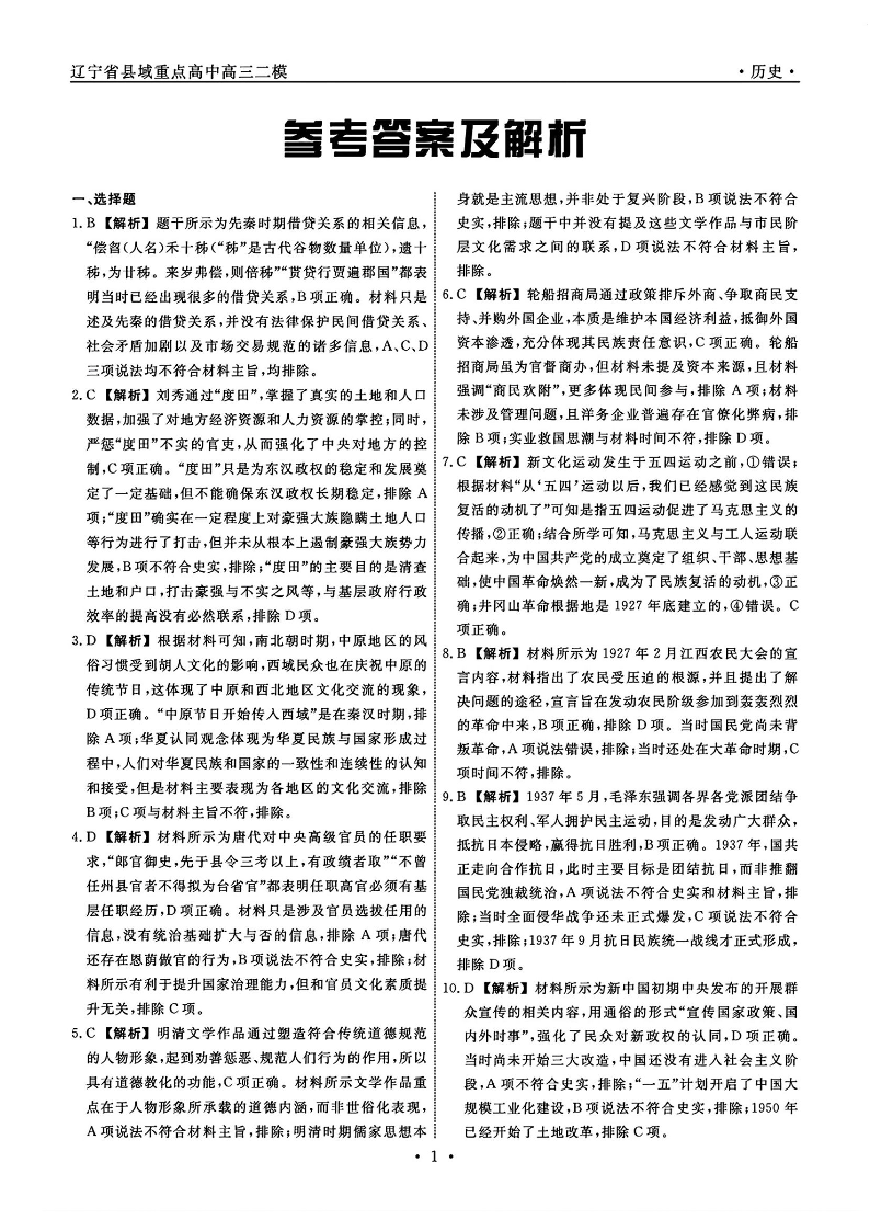 辽宁省县域重点高中2025届高三下学期二模考试历史答案