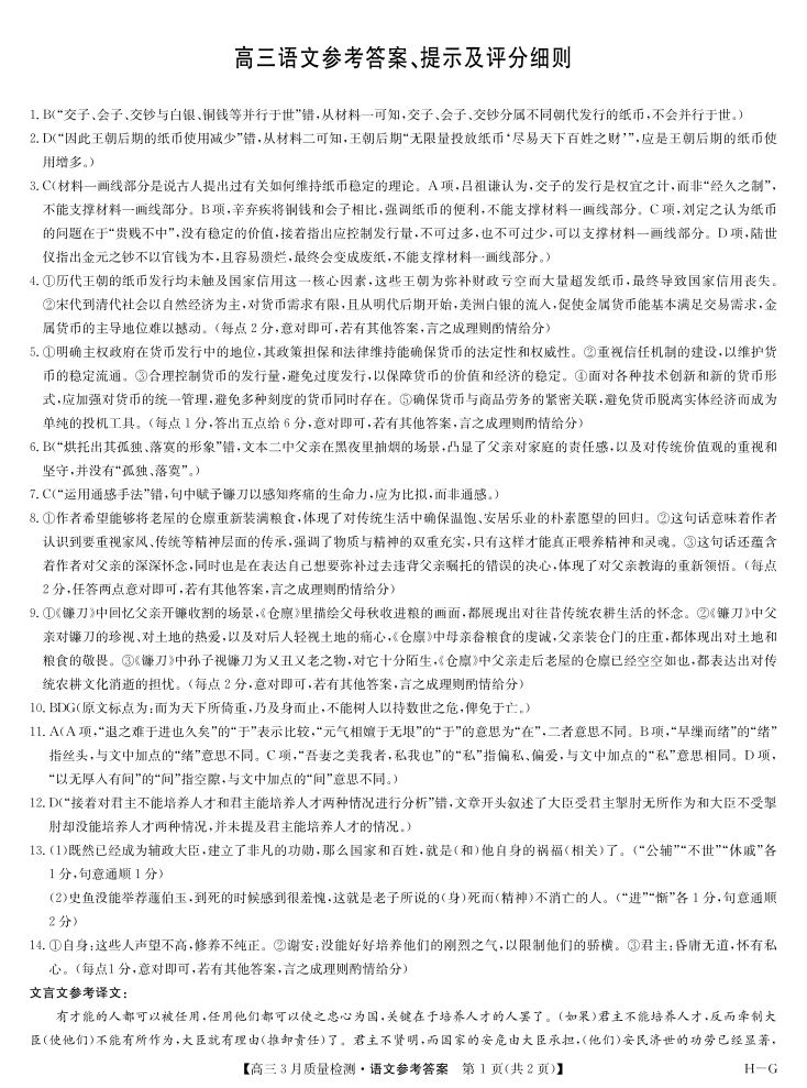 九师联盟2025届高三3月质量检测巩固卷(G)语文答案