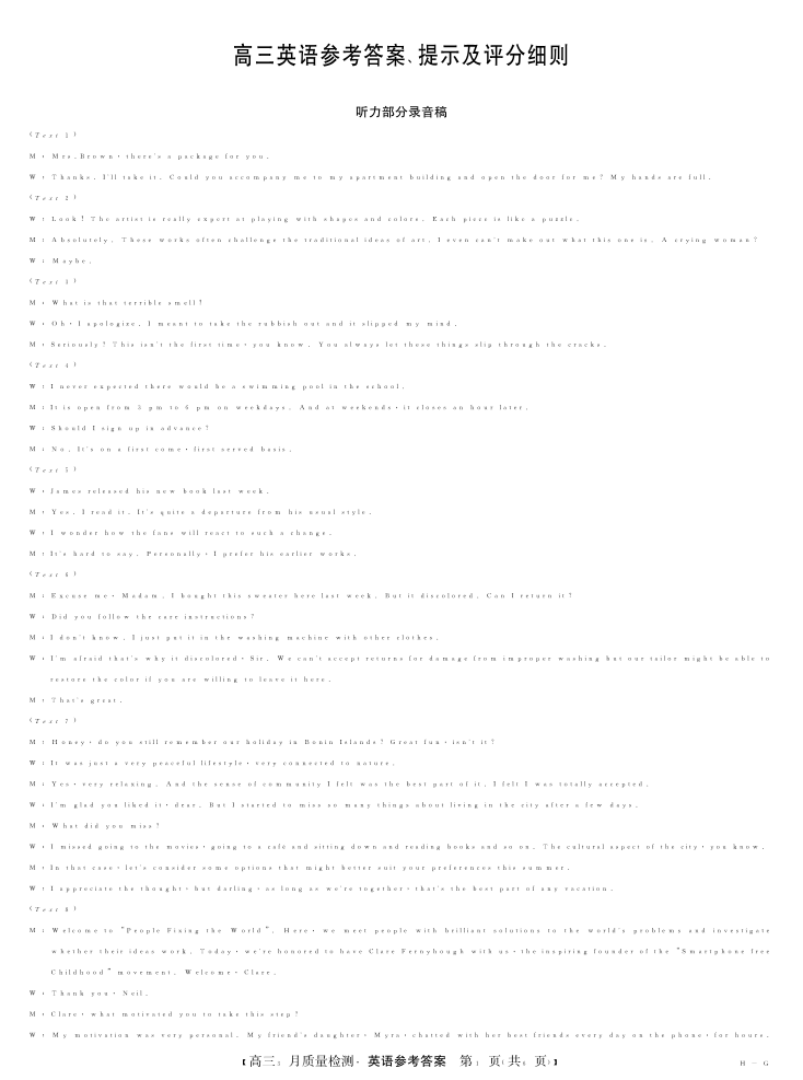 九师联盟2025届高三3月质量检测巩固卷(G)英语答案