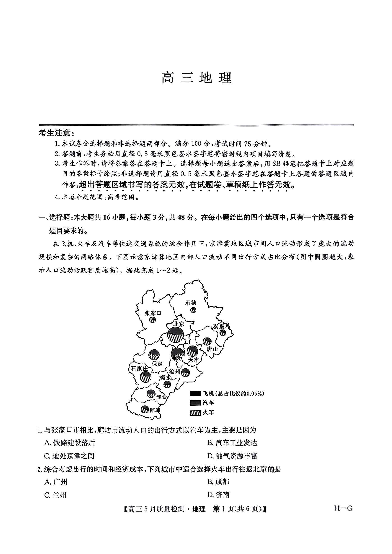 九师联盟2025届高三3月质量检测巩固卷(G)地理