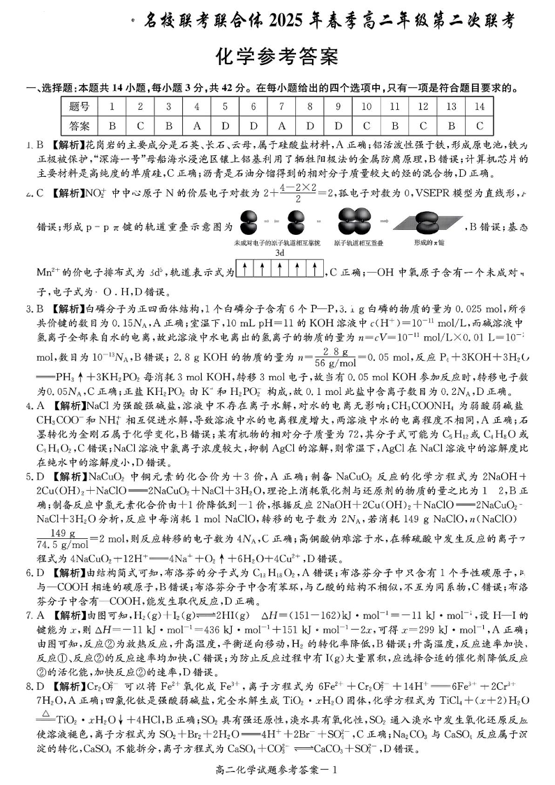 湖南省炎德英才名校联考联合体2024-2025学年高二下学期3月月考化学答案