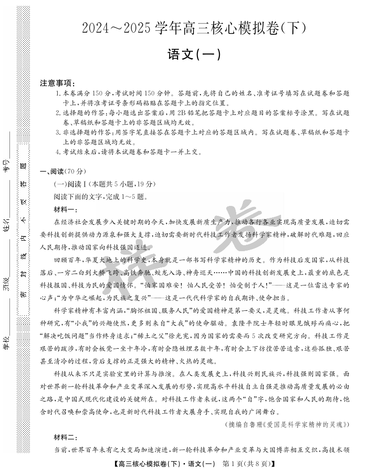 湖北省九师联盟2025届核心模拟卷(下)语文