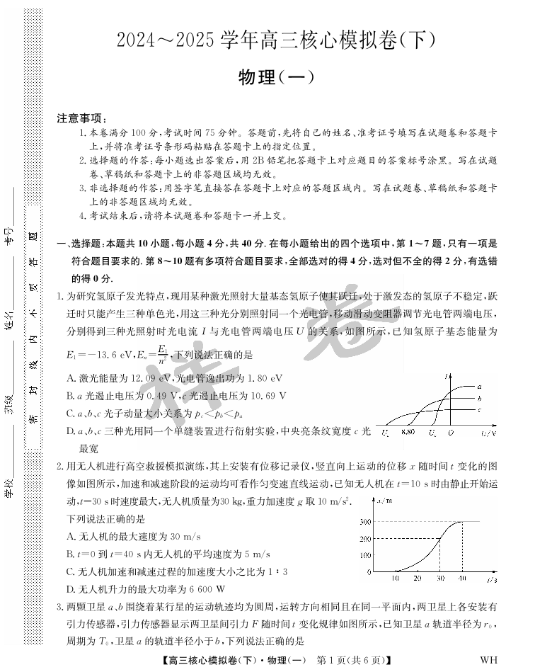 湖北省九师联盟2025届核心模拟卷(下)物理