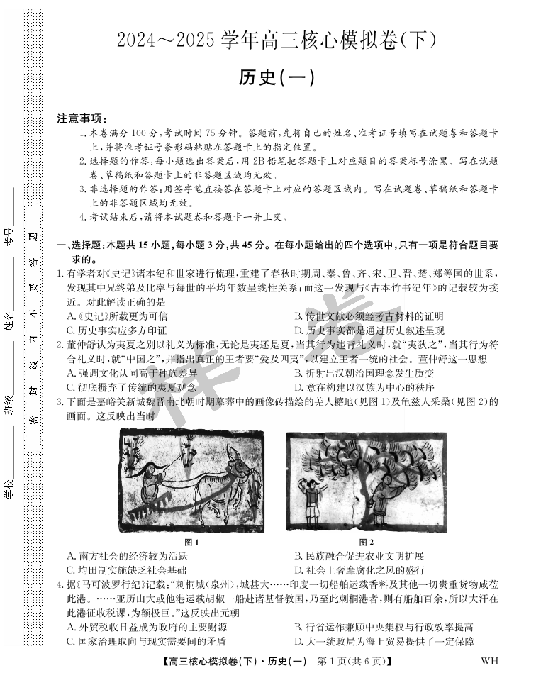 湖北省九师联盟2025届核心模拟卷(下)历史