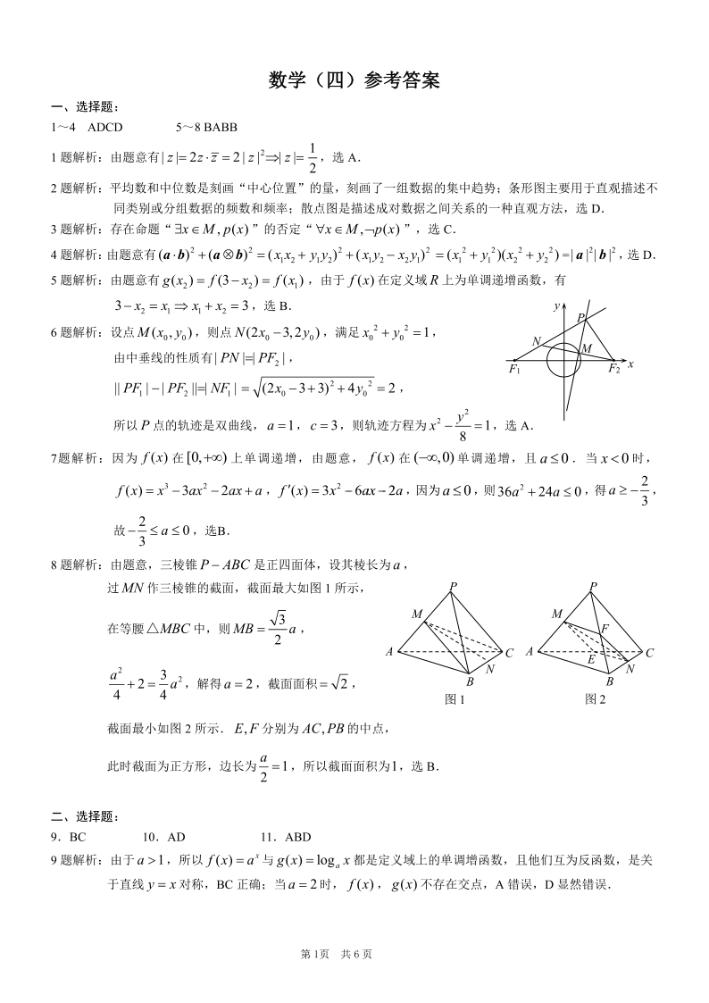 重庆市2025年普通高等学校招生全国统一考试康德调研(四)数学答案