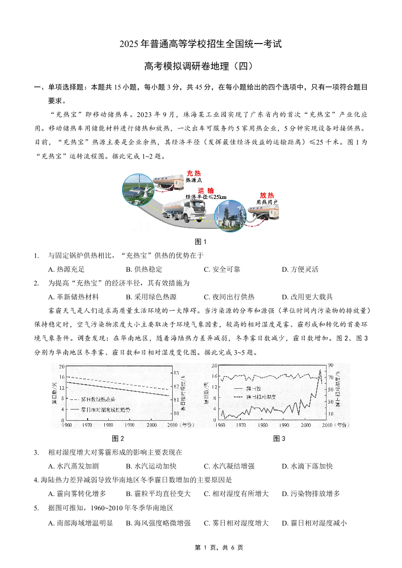 重庆市2025年普通高等学校招生全国统一考试康德调研(四)地理