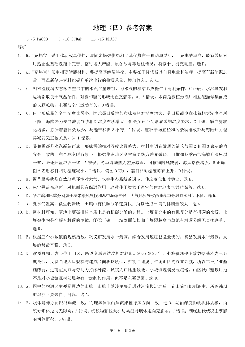 重庆市2025年普通高等学校招生全国统一考试康德调研(四)地理答案