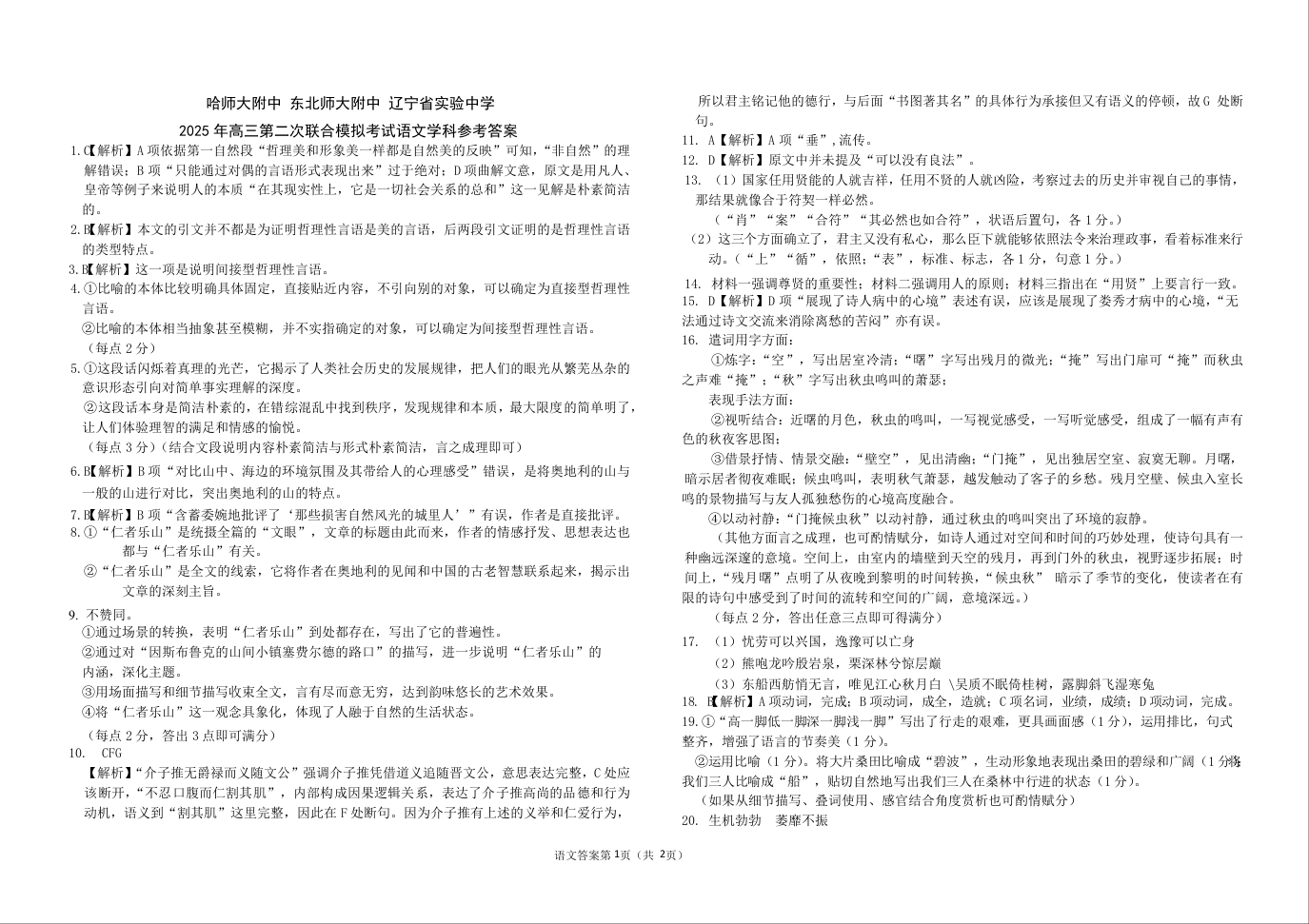 哈师大附中、东北师大附中、辽宁省实验中学2025届高三第二次联合模拟考试语文答案