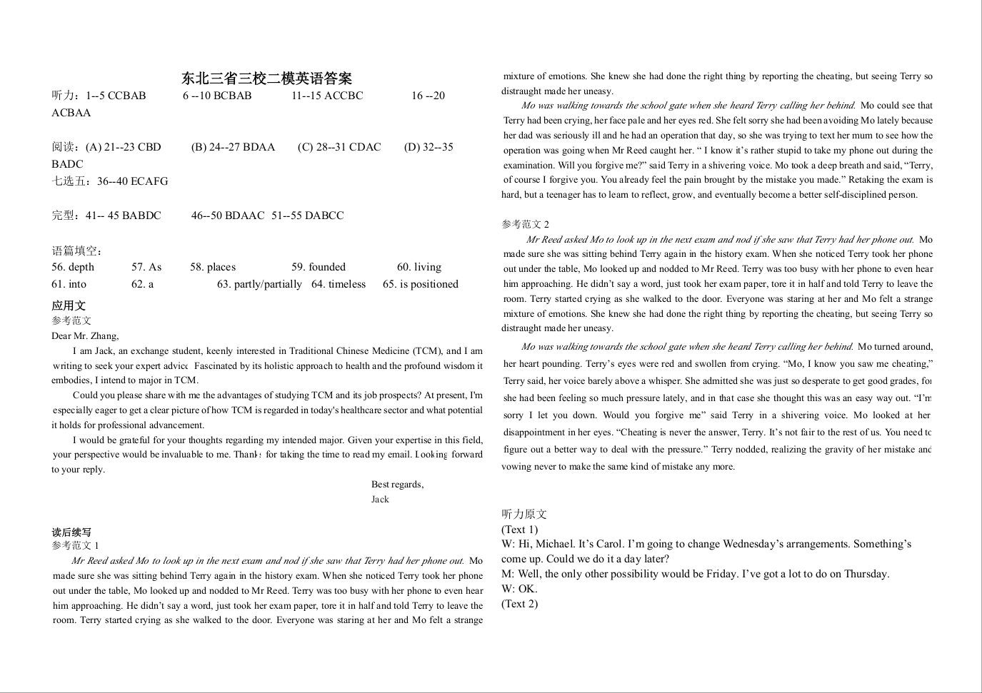 哈师大附中、东北师大附中、辽宁省实验中学2025届高三第二次联合模拟考试英语答案