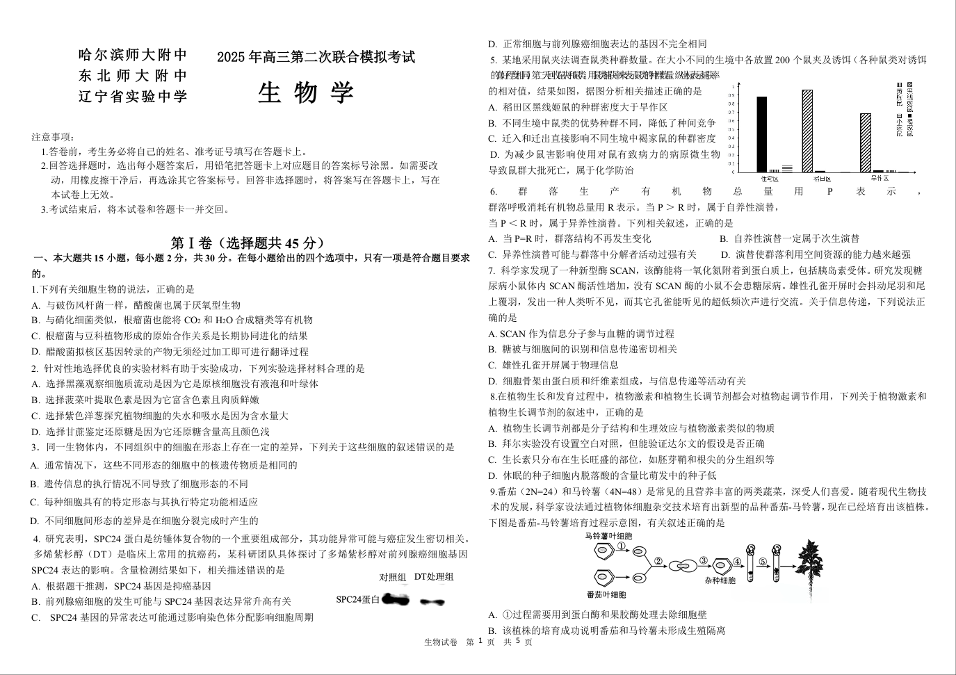 哈师大附中、东北师大附中、辽宁省实验中学2025届高三第二次联合模拟考试生物