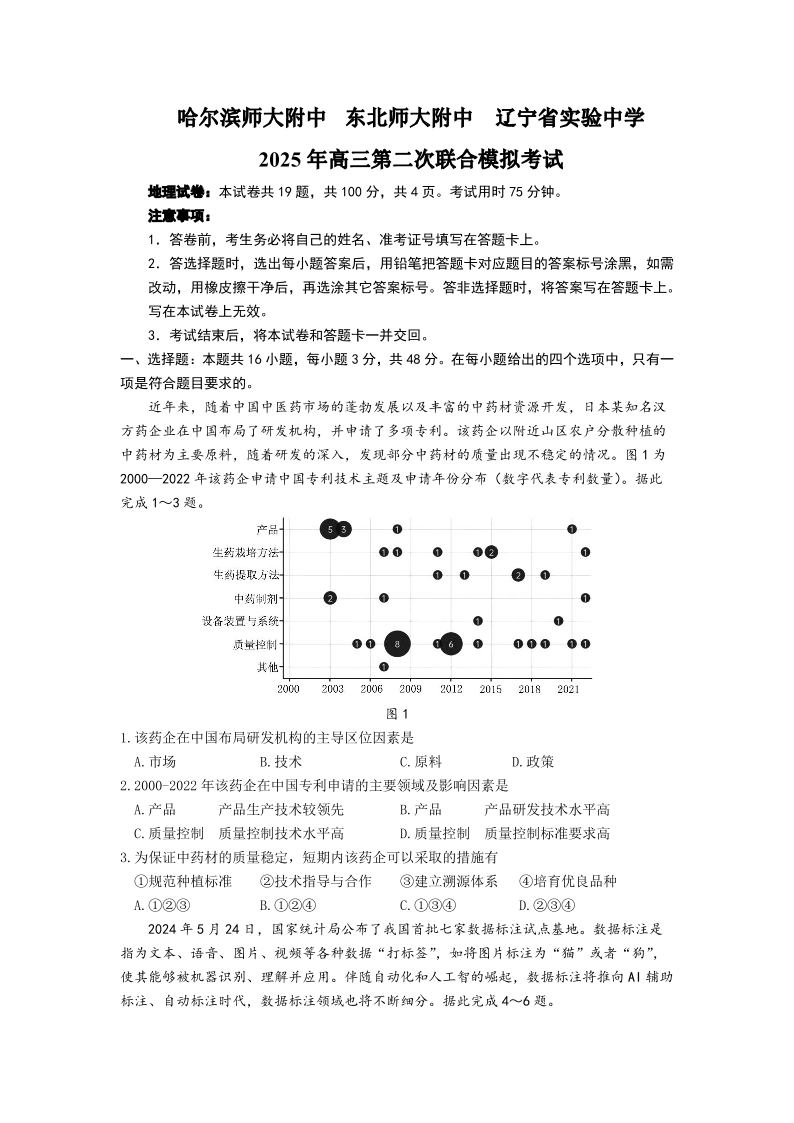 哈师大附中、东北师大附中、辽宁省实验中学2024-2025学年下学期高三二模联考地理