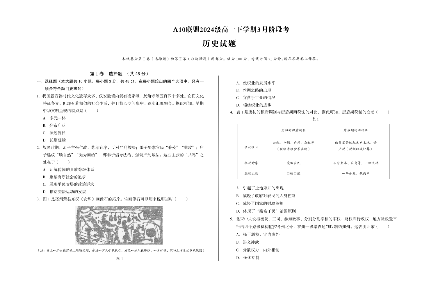 安徽省A10联盟2024-2025学年下学期3月高一阶段考试历史+答案