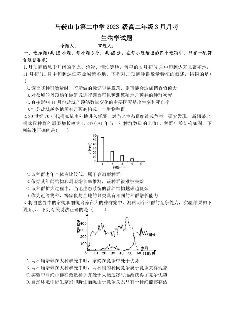 安徽省马鞍山市二中2024-2025学年下学期3月高二月考生物+答案