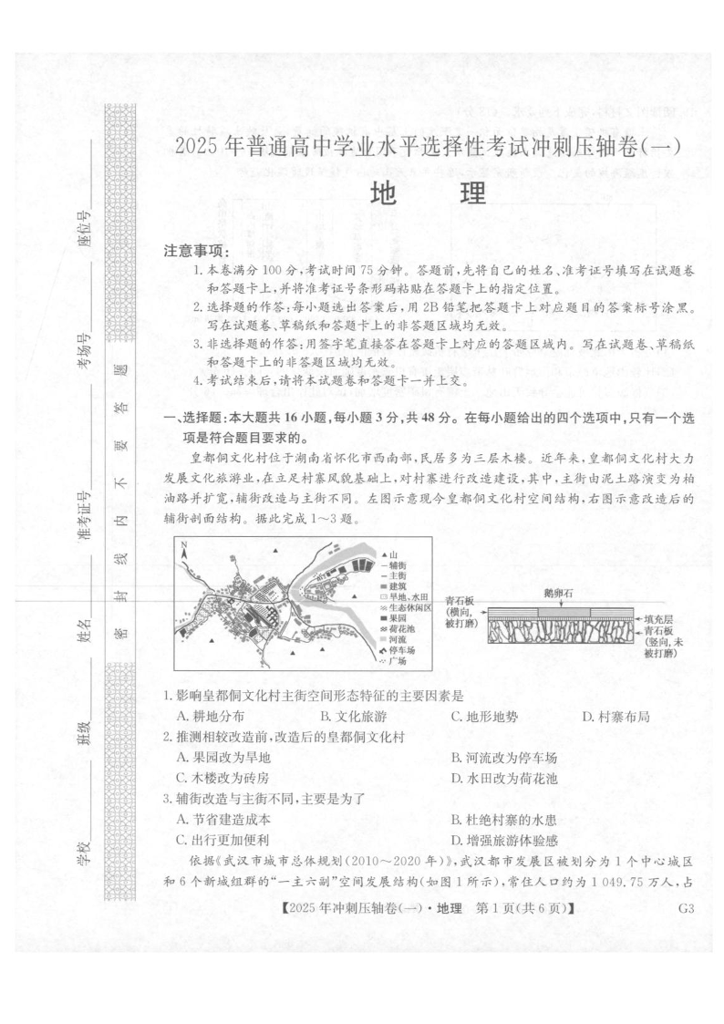 2025年普通高中学业水平选择性考试冲刺压轴卷(一)地理+答案