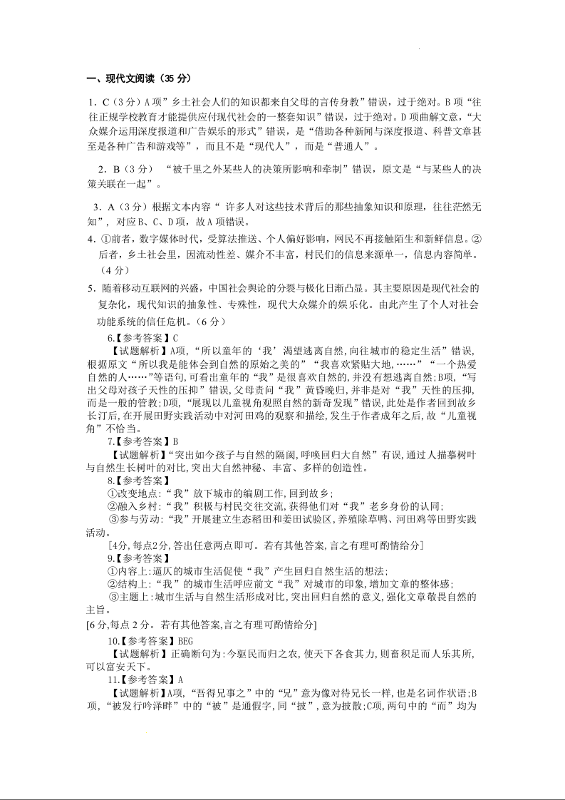 福建省福州市三中2024-2025学年下学期高三第十四次质量检测语文答案