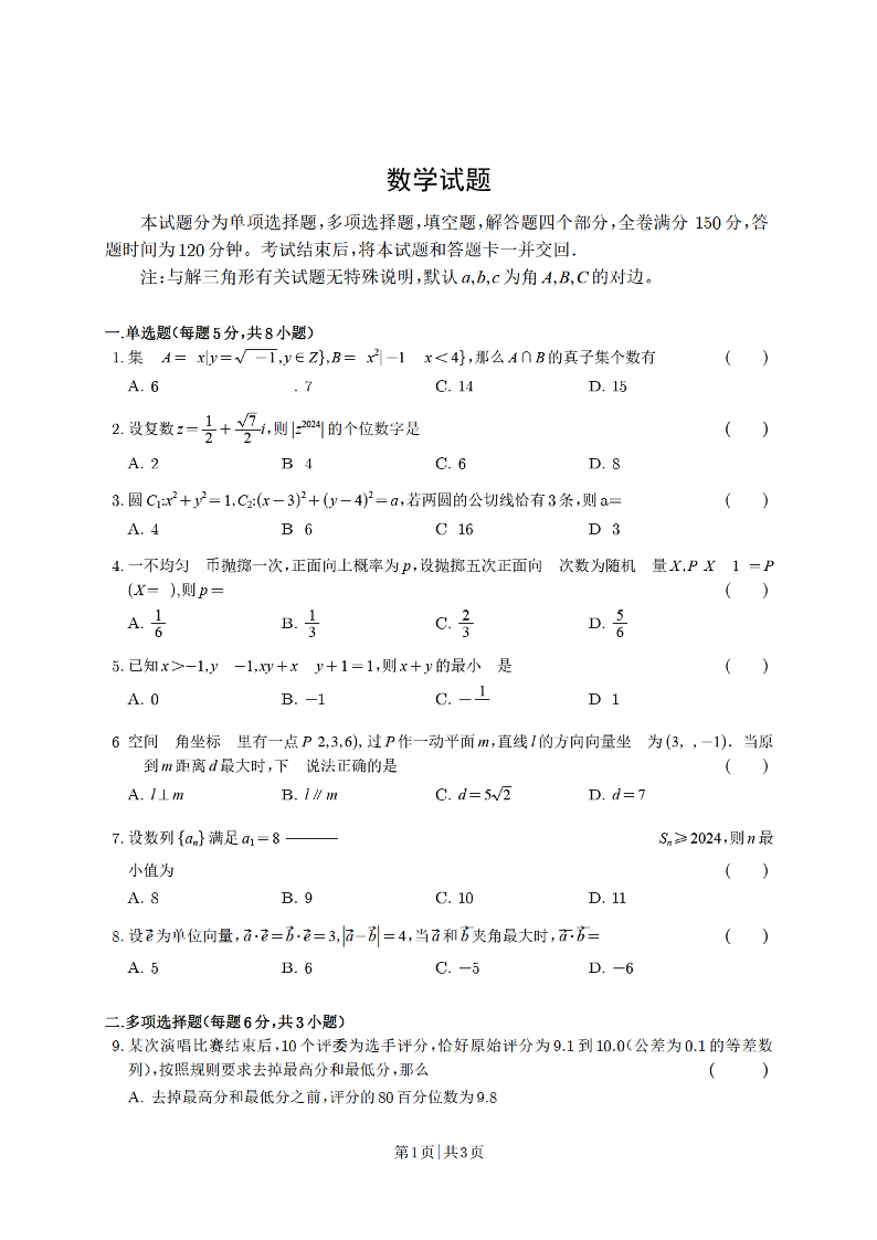 江苏省常州一中2024-2025学年下学期四月高三适应性测试数学
