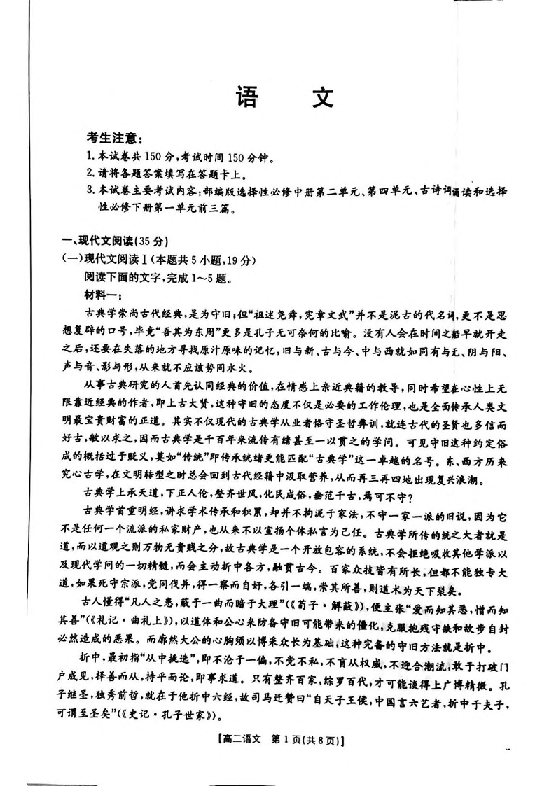 河南省安鹤新联盟2024-2025学年下学期3月高二联考语文+答案