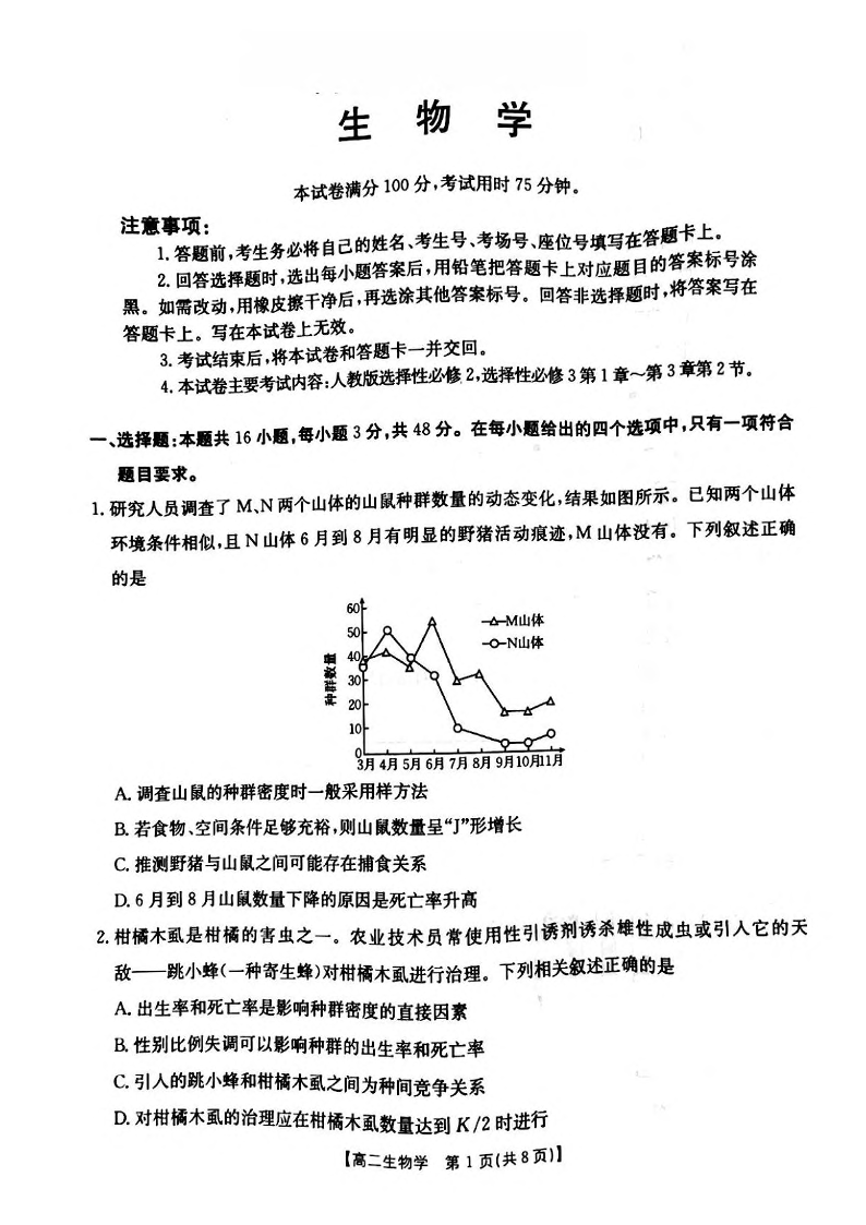 河南省安鹤新联盟2024-2025学年下学期3月高二联考生物+答案