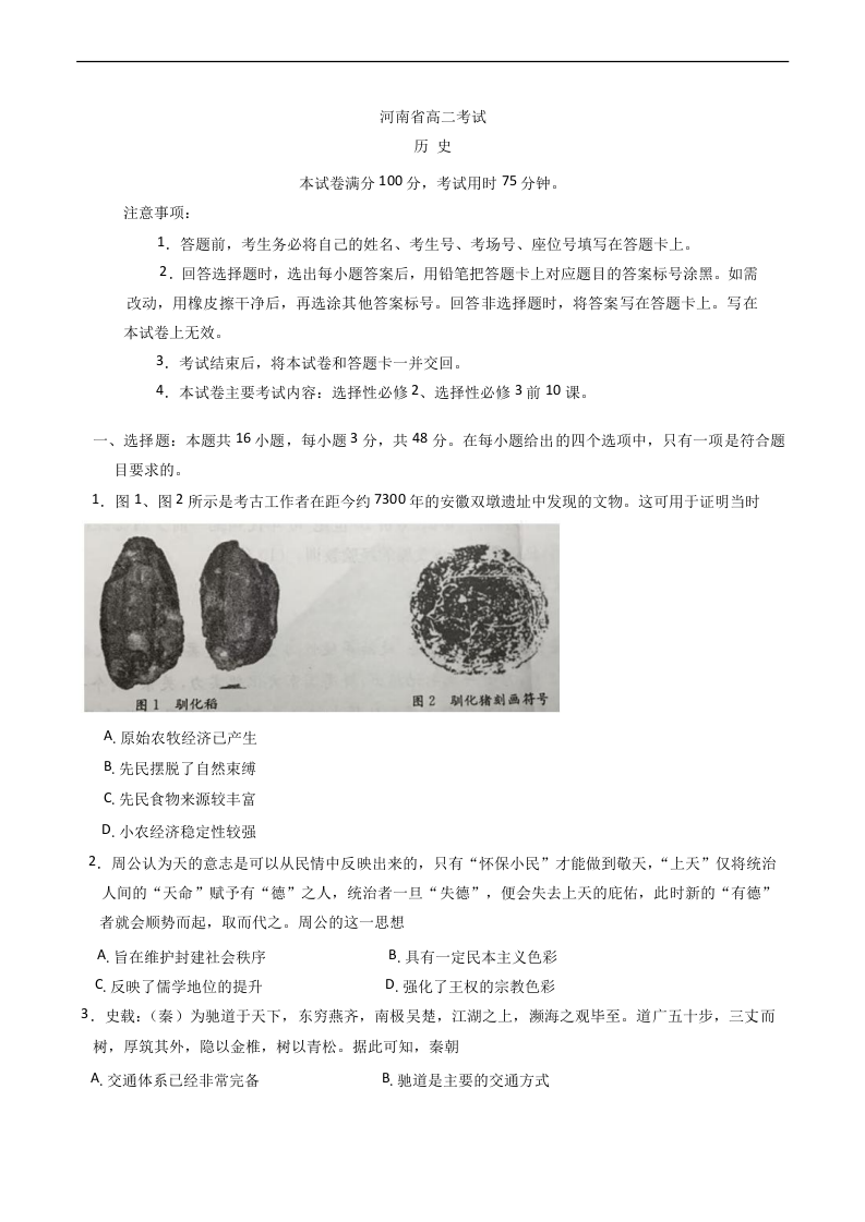 河南省安鹤新联盟2024-2025学年下学期3月高二联考历史+答案