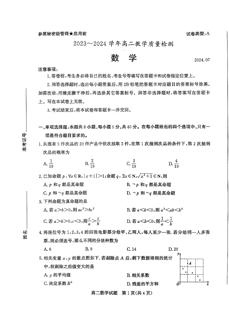 山东省枣庄市高2025届期末教学质量检测数学