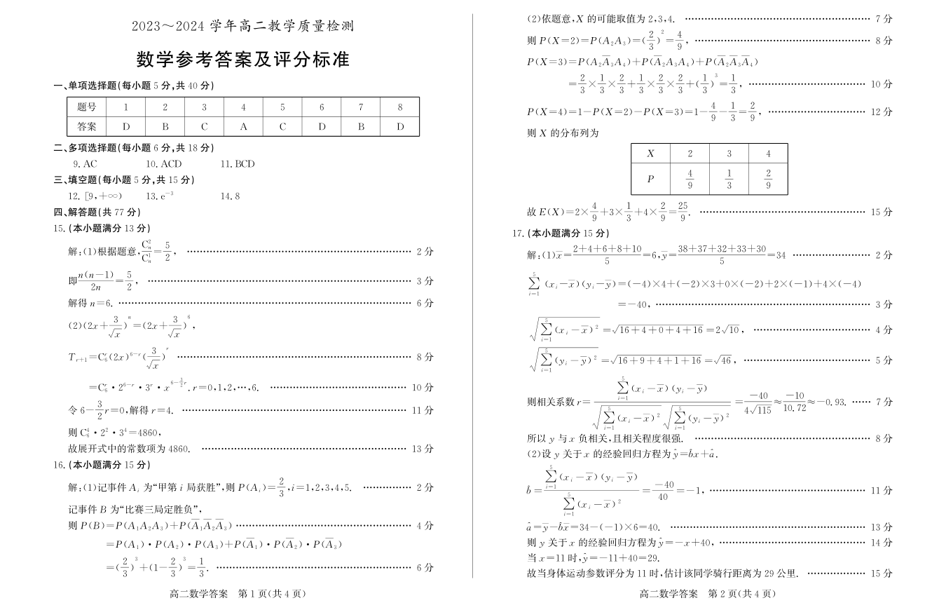 山东省枣庄市高2025届期末教学质量检测数学答案