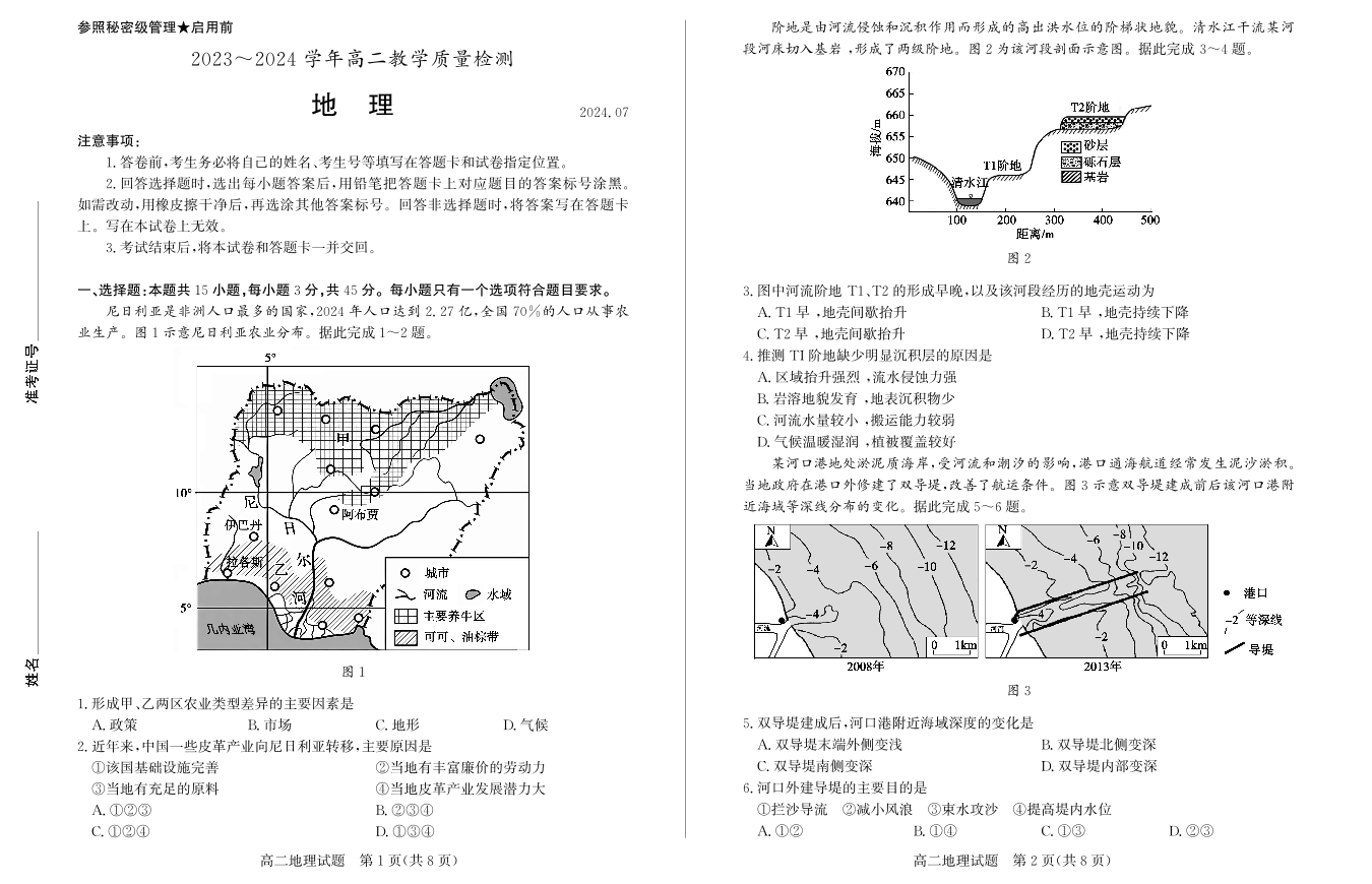 山东省枣庄市高2025届期末教学质量检测地理