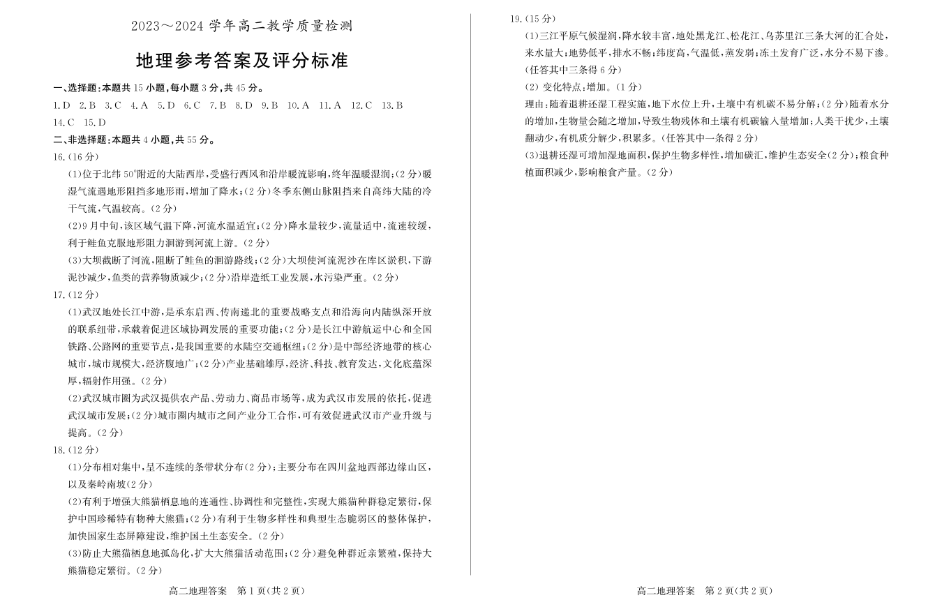 山东省枣庄市高2025届期末教学质量检测地理答案